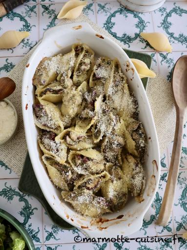 1/ Faire cuire les conchiglioni comme indiqué sur le paquet. Égoutter et réserver.