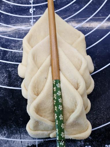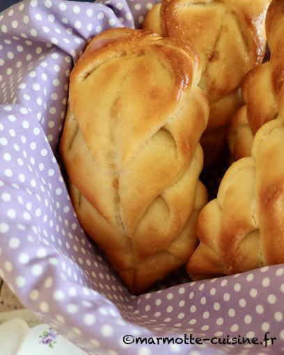 J’ai fait des photos pas à pas pour le façonnage des petits pains coeurs mais n’hésitez pas visionner la vidéo en lien, je trouve que c’est toujours plus parlant.