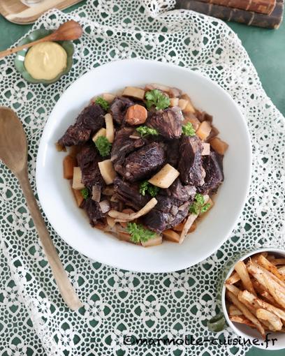 C’est un légume que j’aime bien mais souvent je n’en prépare qu’une fois en hiver car mes producteurs locaux n’en ont que quelques semaines. Je vous propose de découvrir la recette que j’ai préparée l’année dernière pour le mettre dans nos assiettes. J’ai opté pour un plat réconfortant, facile à faire et riche en saveurs : la daube de bœuf. Il en existe beaucoup de versions plus ou moins ensoleillées. Ici, on est sur une version hiver-hiver pour tous les légumes d’hiver qui sont encore disponibles.