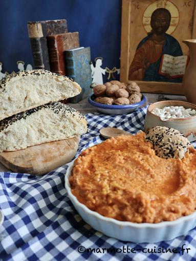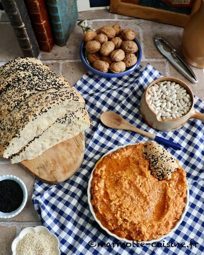 Purée de haricots blancs au paprika et à l’ail et Koulouri, pain campagnard chypriote  (Temps de Carême #3)