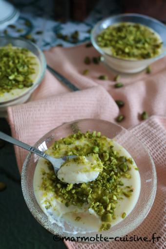 C’est très facile à faire et ça change des crèmes-desserts au chocolat ou à la vanille. J’ai beaucoup aimé cette crème à la texture fine parfumée à l’orange et le croquant apporté par les pistaches concassées que vous pouvez remplacer par un autre oléagineux si vous le souhaitez, le résultat sera intéressant également.