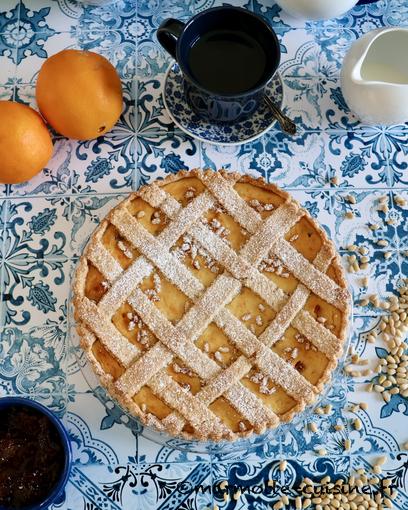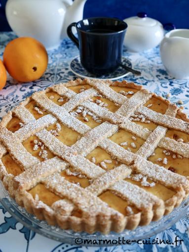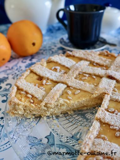 On finit en apothéose avec cette très jolie tarte grillagée. Au début du mois, j’avais publié deux recettes de gâteaux alliant la ricotta au citron. La ricotta se marie aussi très bien avec l’orange, même si on voit cette association moins souvent. La douceur de la ricotta adoucit l’amertume de la marmelade d’orange. L’ensemble n’est pas très sucré et bien fondant.