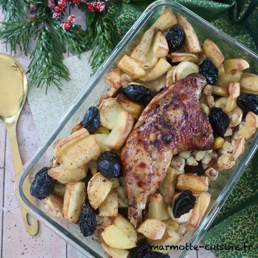 Cuisse de dinde aux pruneaux et légumes racines rôtis au four (Calendrier de l’Avent salé : Case 1)